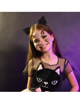Ajoutez une touche mystique et élégante à votre look d'Halloween ou de bal masqué avec ce serre-tête oreilles de chat en dentelle noire, parfait pour un carnaval mystérieux et glamour !