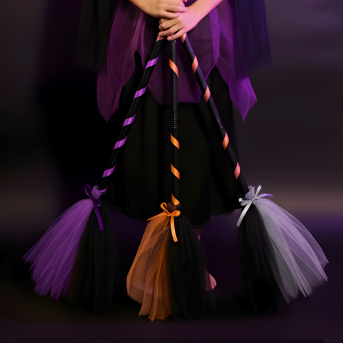 Complétez votre déguisement de sorcière avec ce balai coloré qui allie mystère et fantaisie !