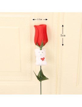 - Détail : rose rouge avec un tout petit ourson blanc