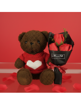 Pack contenant : une peluche ourson et un bouquet de rose