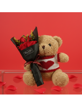 Un ourson câlin et un bouquet de roses : tout ce qu’il faut pour faire fondre les cœurs !