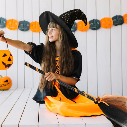 Complétez votre déguisement de sorcière avec ce balai coloré qui allie mystère et fantaisie !